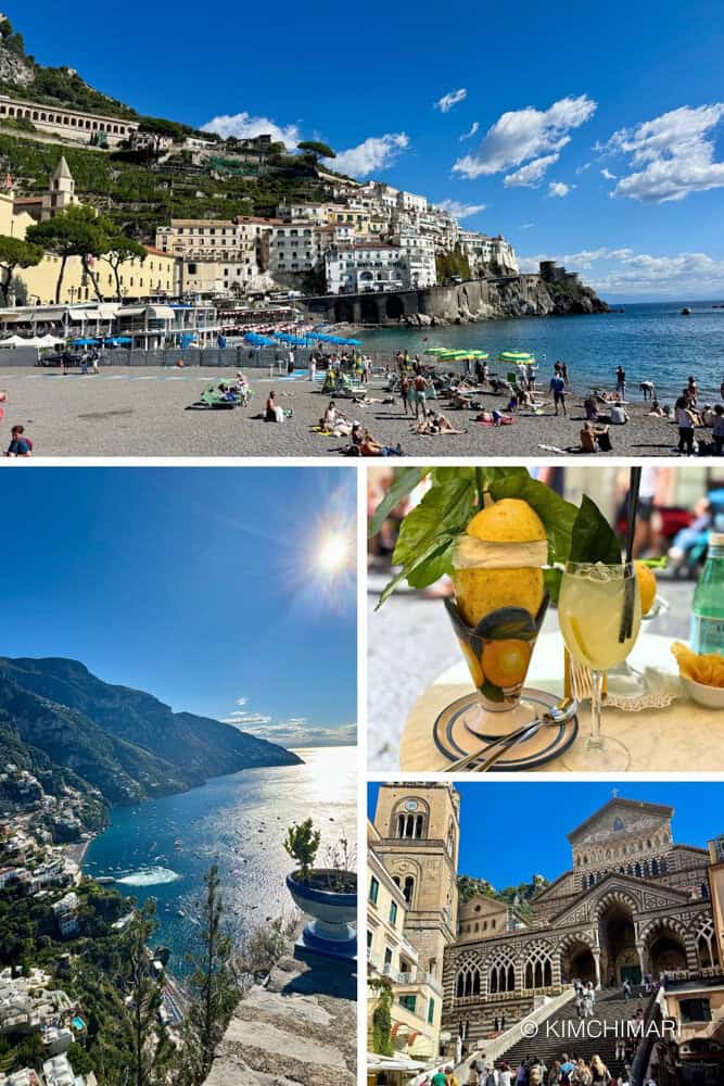 But once we got out of the car and tried to walk around, the streets were so crowded with tourists that I couldn’t really fully enjoy the town.. However, we were able to try both the Amalfi Lemon Sorbet (Sorbetto al Limone) and the Limoncello spritz, SITTING on a table in one of the busy cafes!! Lemon Sorbet was beautiful and delicious but also expensive. I think we paid like 15 euro because the cafe kind of was at a premium spot in the town. So be sure to check and compare prices if you can.