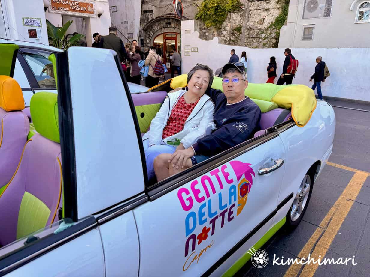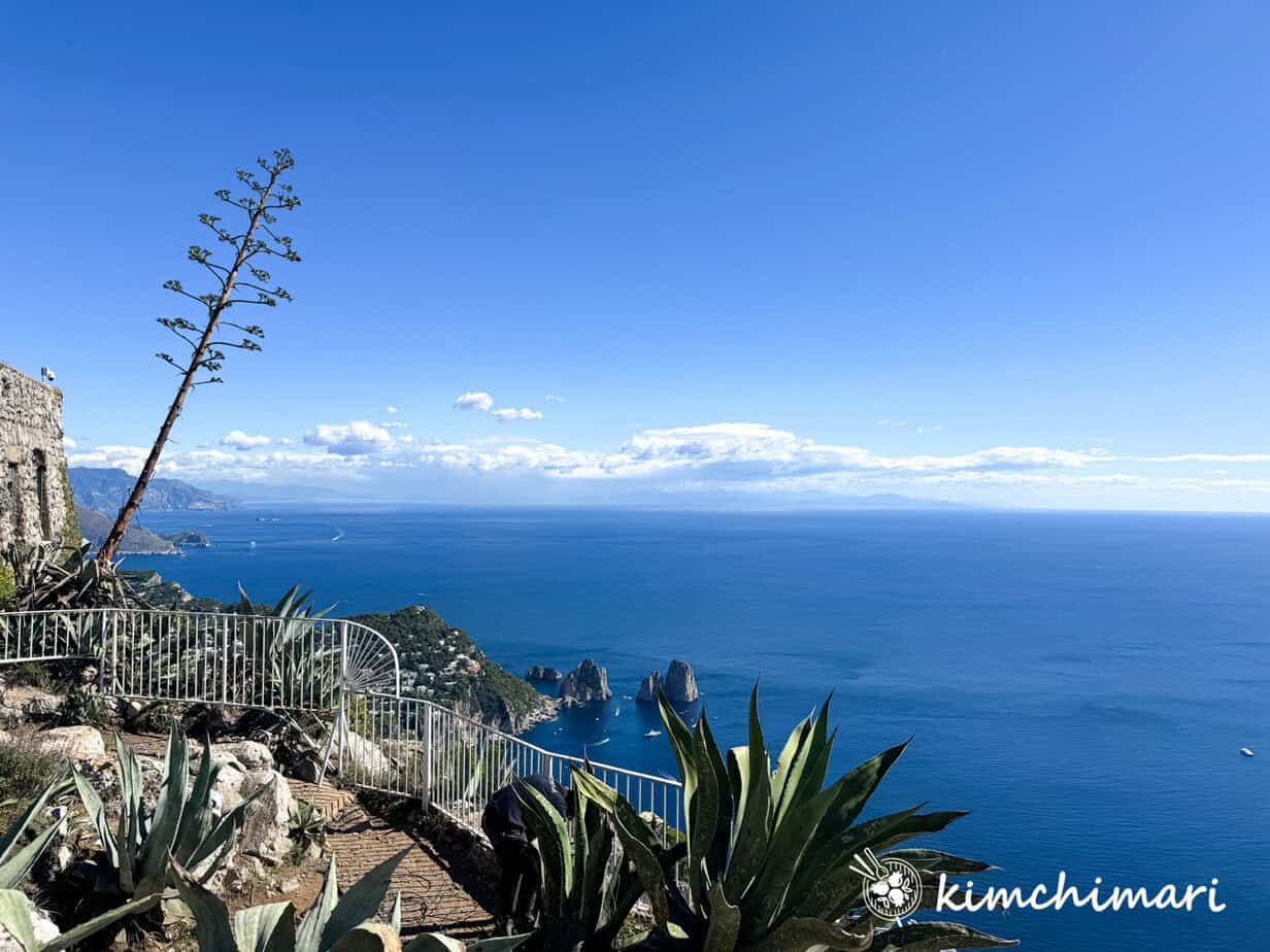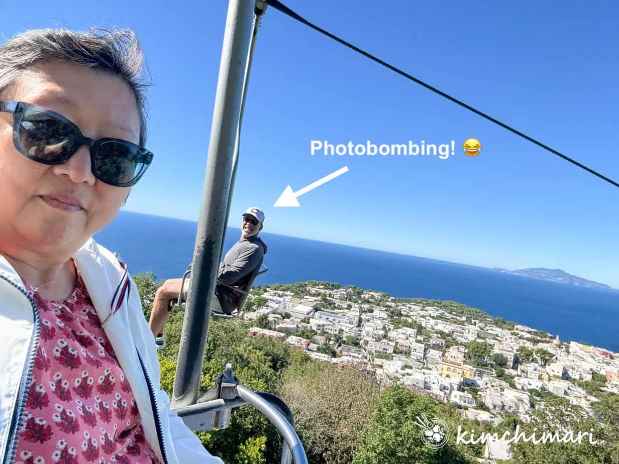 It was a marvelous ride up the roads to the main square of Capri (Piazza Umberto) in the fun, colored convertible taxi while seeing the ever so scenic blue seas – so blue that it appears almost black in my picture (left top)!! And the highlight really was when we took a chairlift to Mount Solaro – the highest point of the island which is in Anacapri (town next to the town of Capri) where you have a breathtaking 360 degree view of the ocean!!