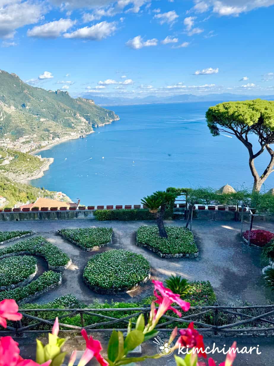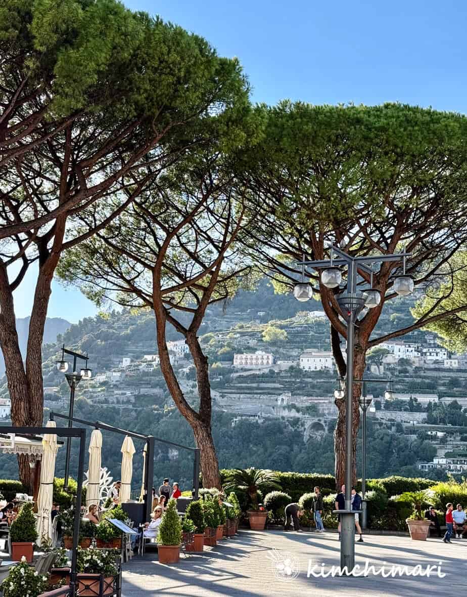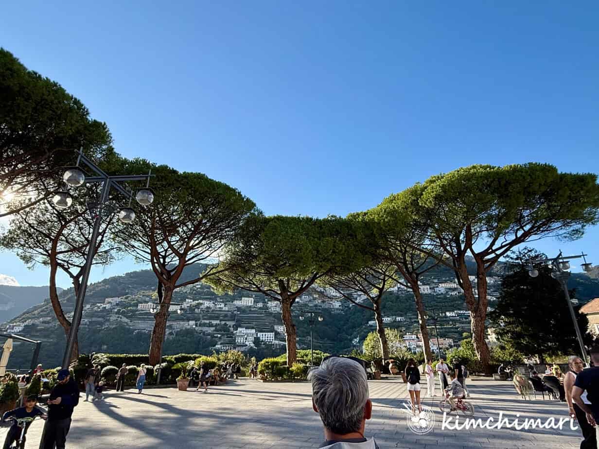 They say it’s much worse in the summer, and I couldn’t imagine the area being any busier. Anyway, we still enjoyed visiting Positano but for me, I most LOVED the views from the town of Ravello. A spectacular, all-around ocean view from the Villa Rufolo gardens(center below) is something you shouldn’t miss. The incredible view when you stand in the Piazza and see a whole village on the hillside beyond the tall tree is something I did not expect. I so wished I had my canon camera.. but hopefully you can get a feel by looking at the left and right pics below.