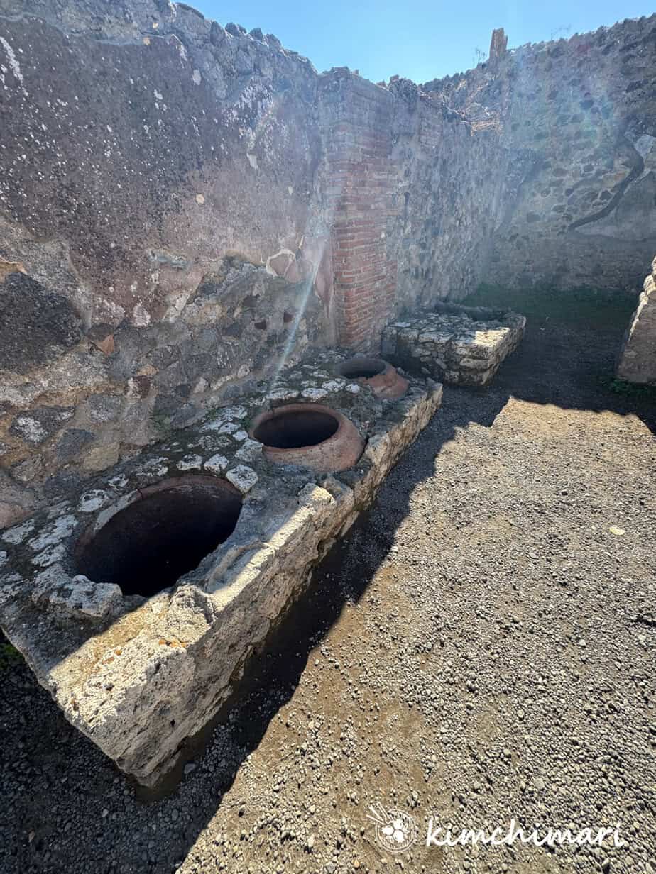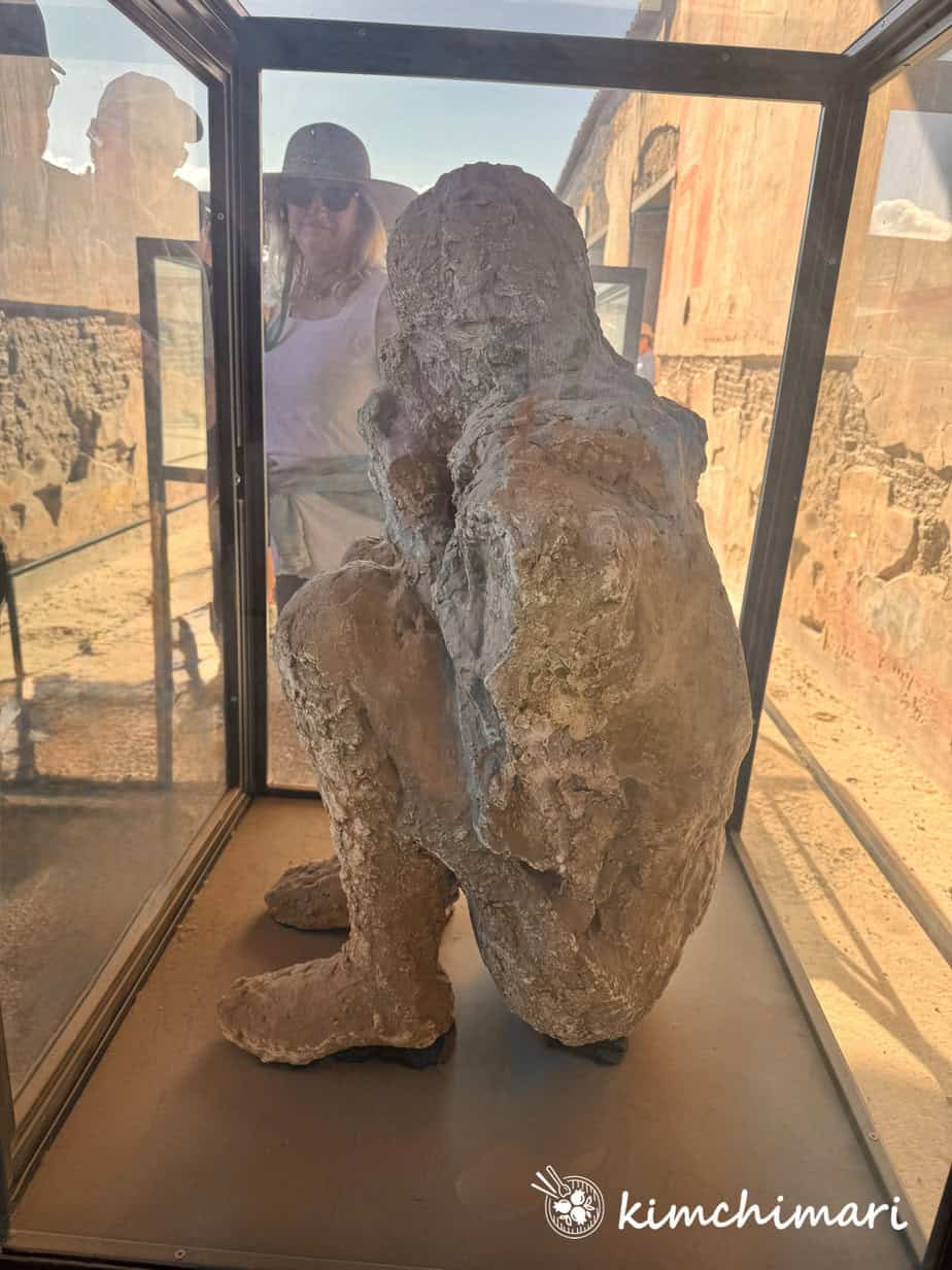 Cast of victim who died in the volcanic eruptionI simply cannot cover all the information that was poured on us by Mario but let me just say that listening to him — I was totally brought back in time and could almost see the bath houses, people and chariots bustling on the streets, bread being baked in the oven, wine and other foods being fermented in the clay jars called Dolias and being sold, foreign businessmen coming off the ships, bathing, dining and then being invited to stay with ladies of the night so men could really get into discussing businesses…lol… humans really haven’t changed much.